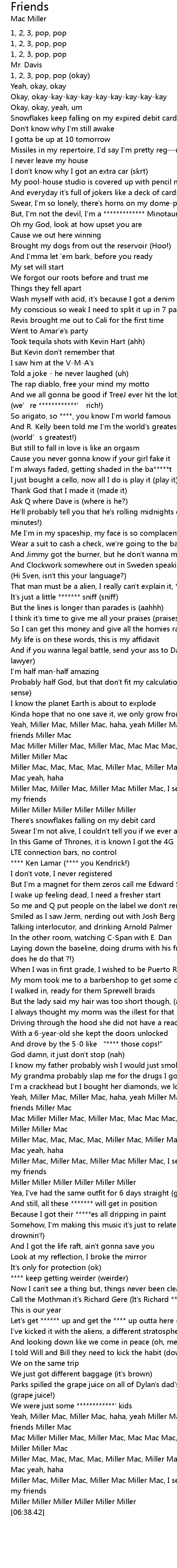 | [06:24.77] | Miller Mac, Miller Mac, Miller Mac Miller Mac, I see you Mac these are my friends |