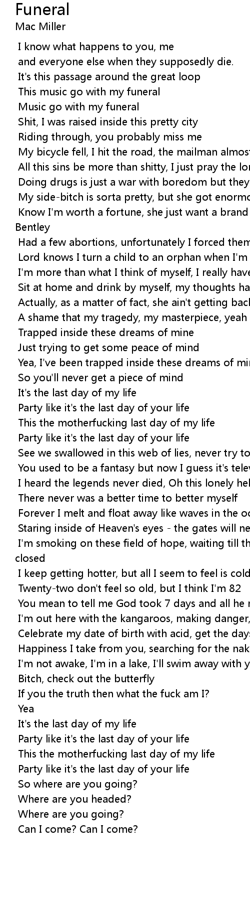 Music go with my funeral |