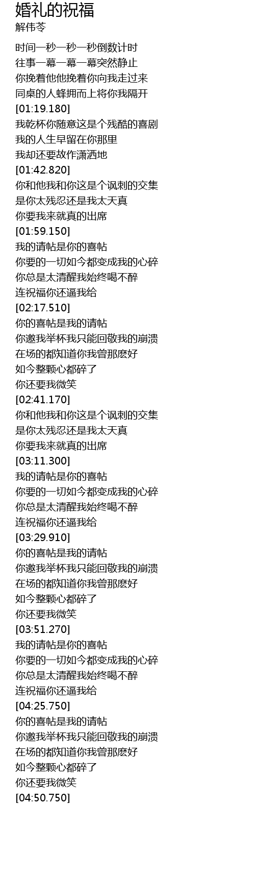 | [04:26.680] | 你的喜帖是我的请帖 |