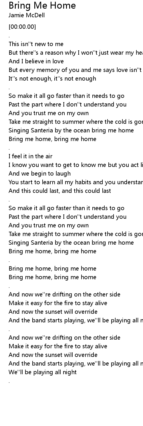 Bring me home, bring me home |