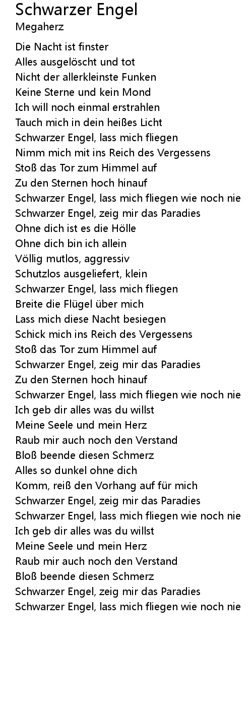 | Schwarzer Engel, lass mich fliegen wie noch nie | |