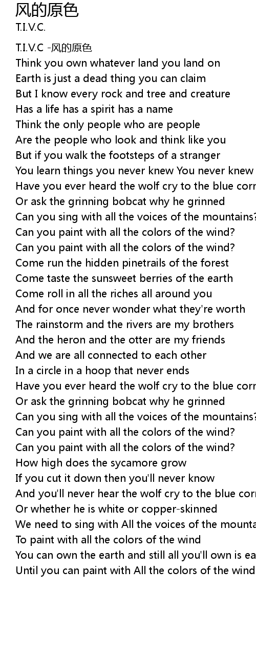 | [03:38.465] | Until you can paint with All the colors of the wind |