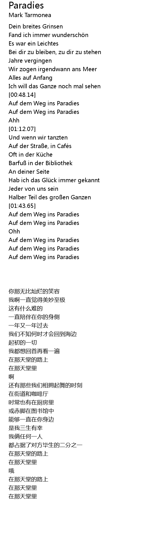 | [03:01.89] | Auf dem Weg ins Paradies |