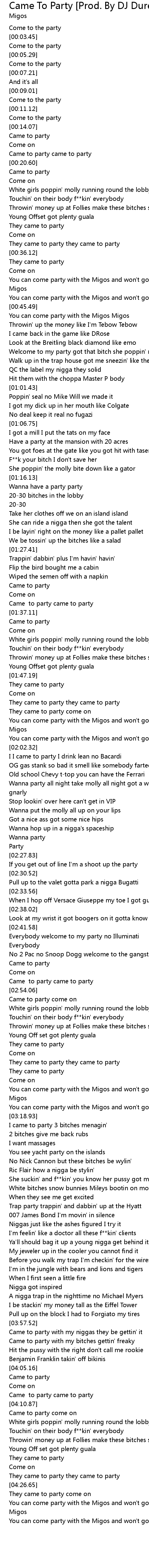 You can come party with the Migos Migos |