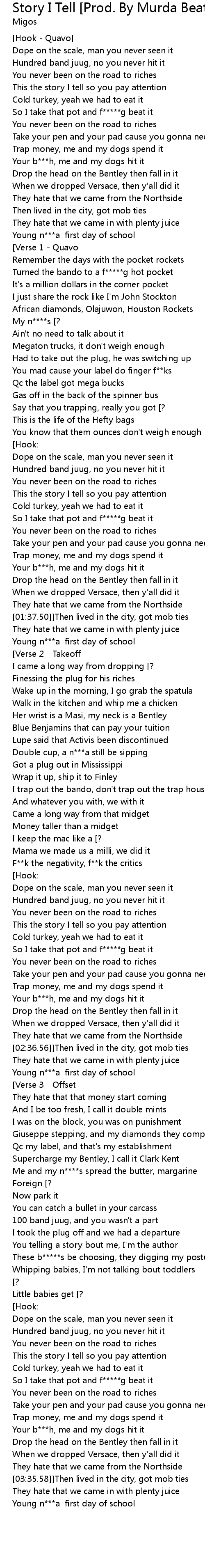 Story I Tell [Prod. By Murda Beatz] Lyrics