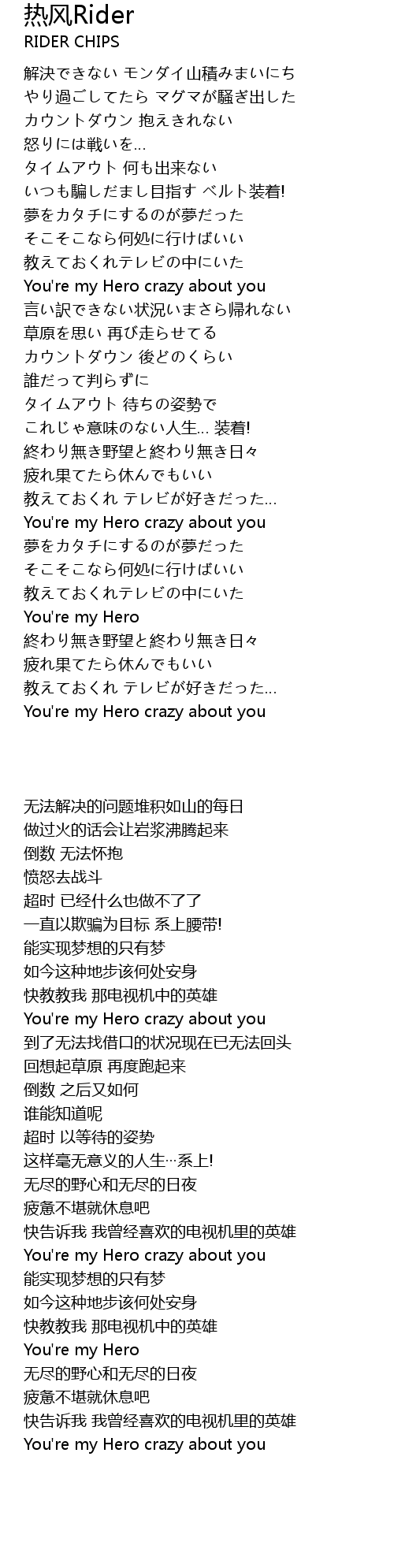 | [02:03.05] | You're my Hero crazy about you |