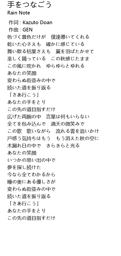 | [00:00.000] | zuo ci : Kazuto Doan |