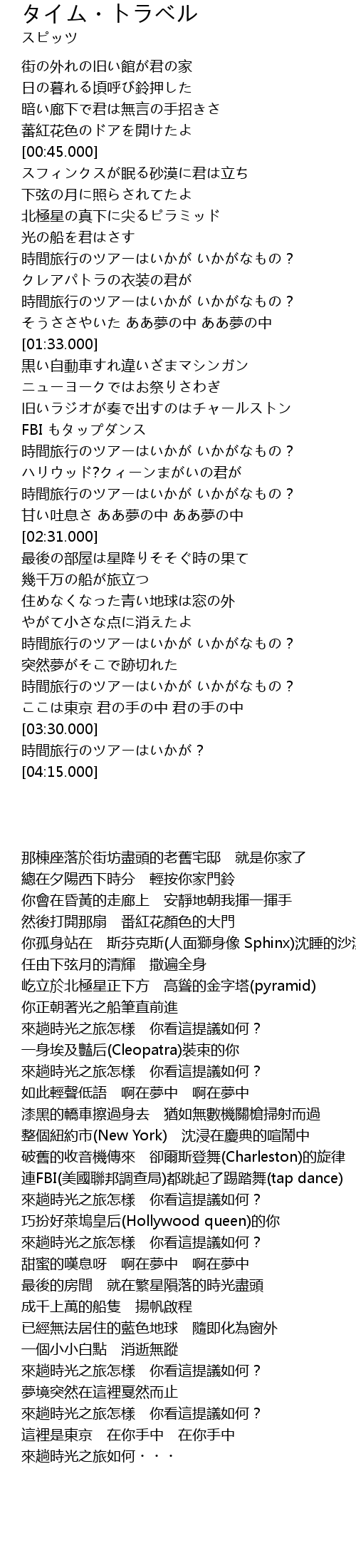 | [01:09.400] | shi jian lv xing ? |