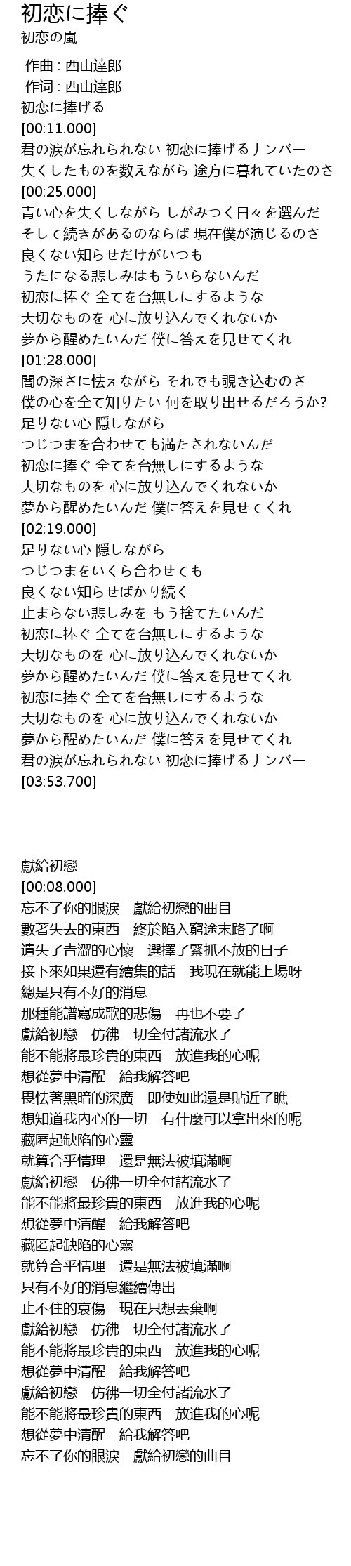 | [03:22.750] | 初恋に捧ぐ 全てを台無しにするような |
