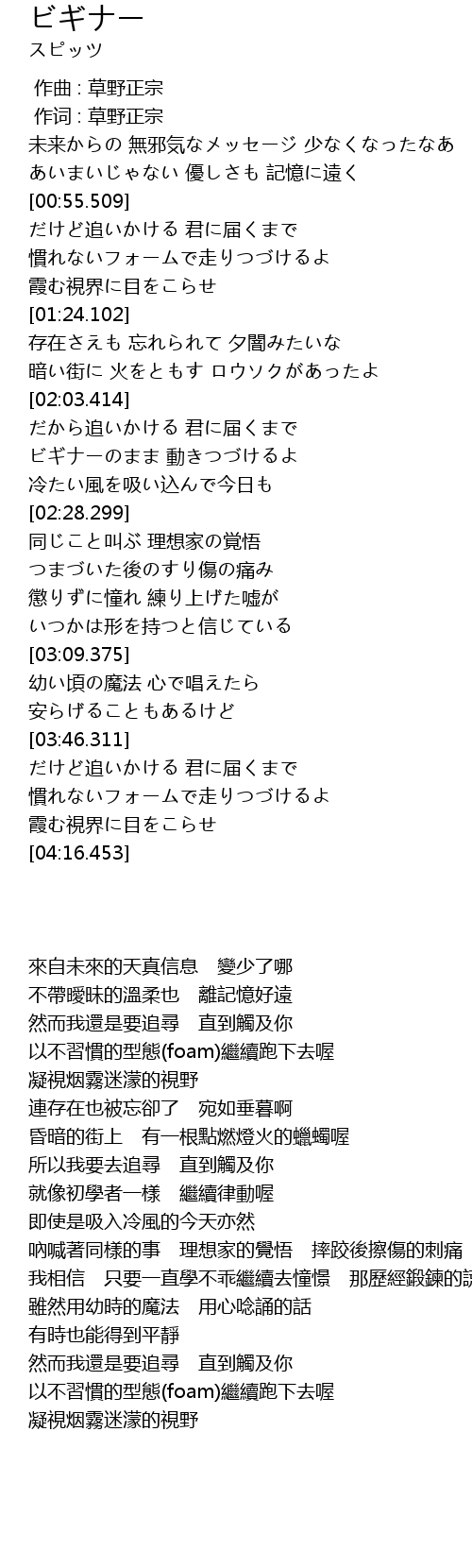 | [02:12.937] | ビギナーのまま 動きつづけるよ |