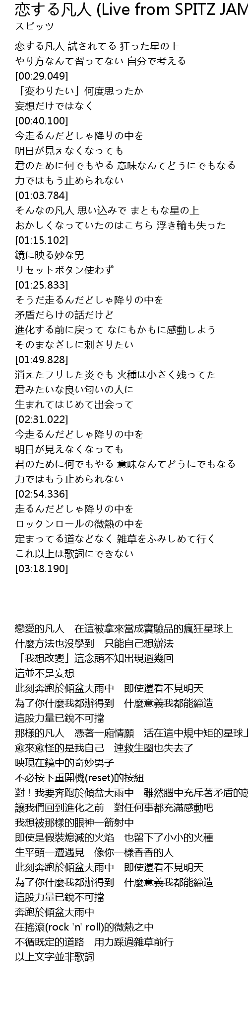| [00:18.232] | 恋する凡人 試されてる 狂った星の上 |