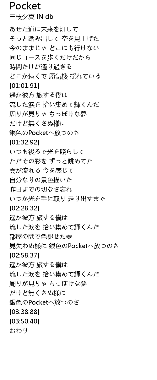 | [04:01.50] | おわり |