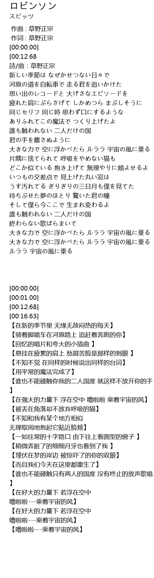 | [01:39.15] | 河原の道を自転車で 走る君を追いかけた |