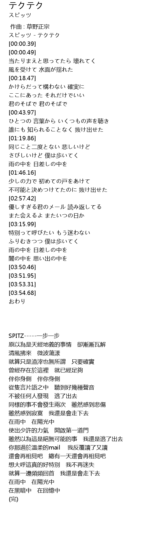 | [02:58.92] | 優しすぎる君のメール 読み返してる |