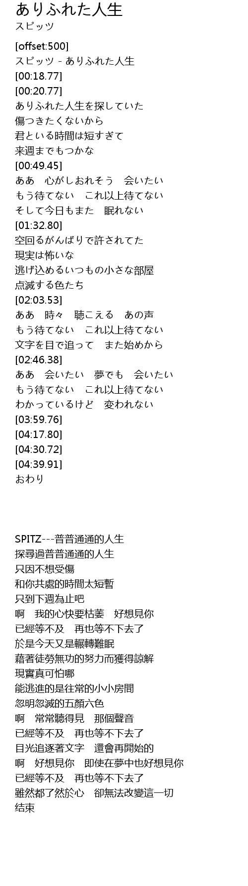スピッツ - ありふれた人生 |