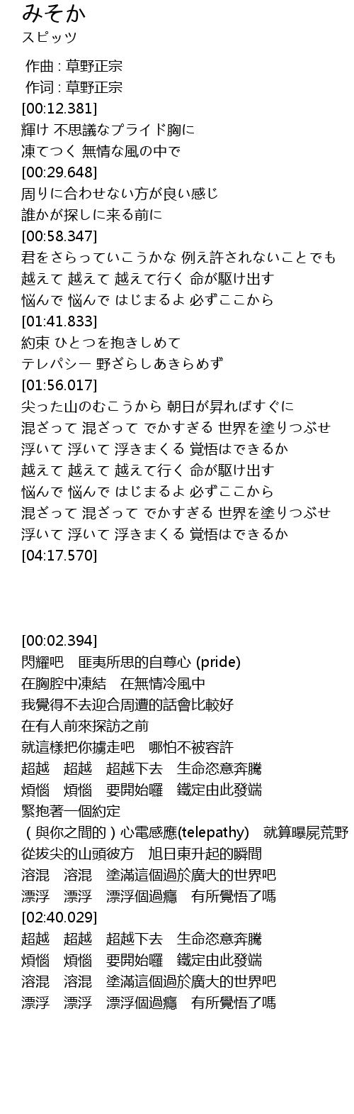 | [01:48.860] | テレパシー 野ざらしあきらめず |