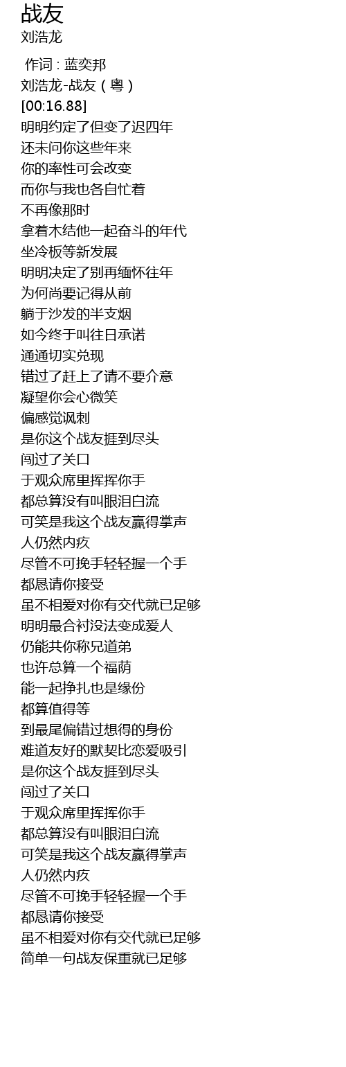 | [00:14.43] | 刘浩龙-战友(粤) |
