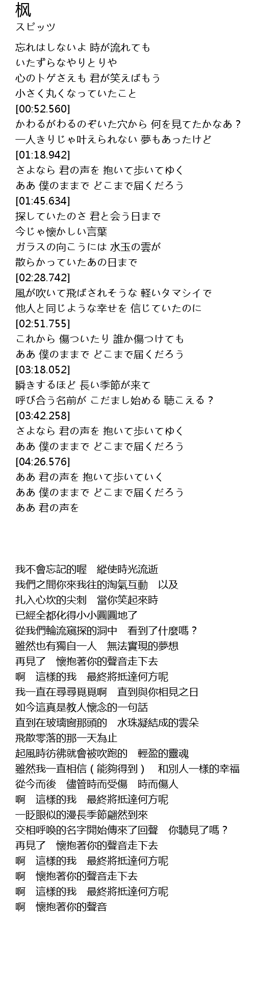 | [03:18.701] | 瞬きするほど 長い季節が来て |