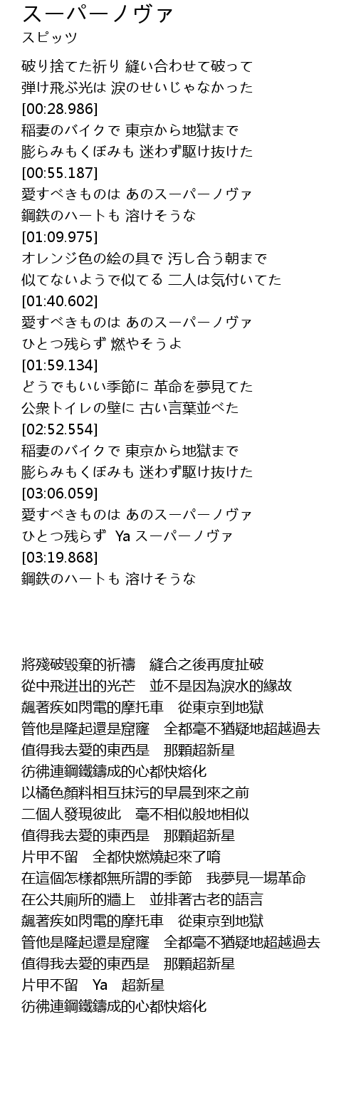 | [03:13.398] | ひとつ残らず Ya スーパーノヴァ |