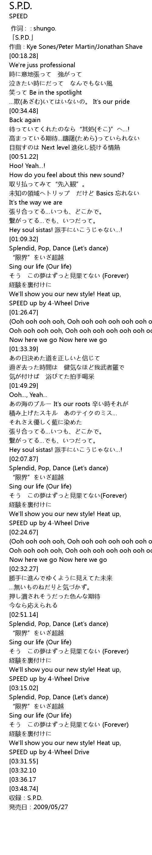 | [00:01.28] | 「S.P.D.」 |