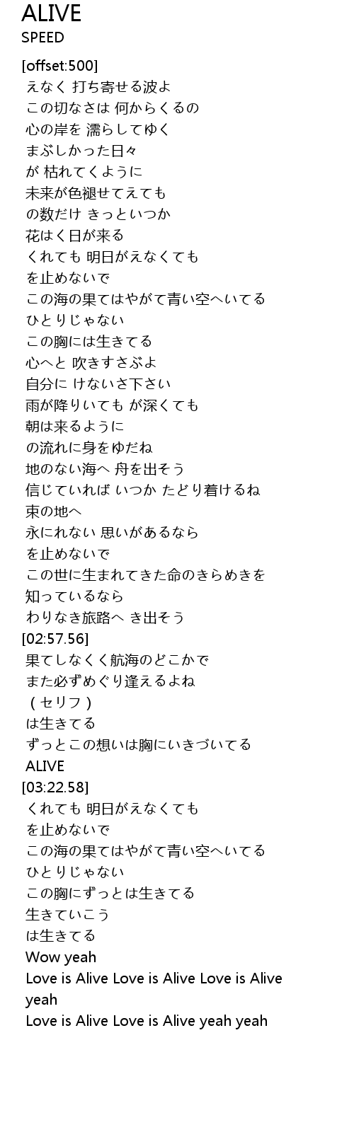 | [04:25.71] | Love is Alive Love is Alive Love is Alive |