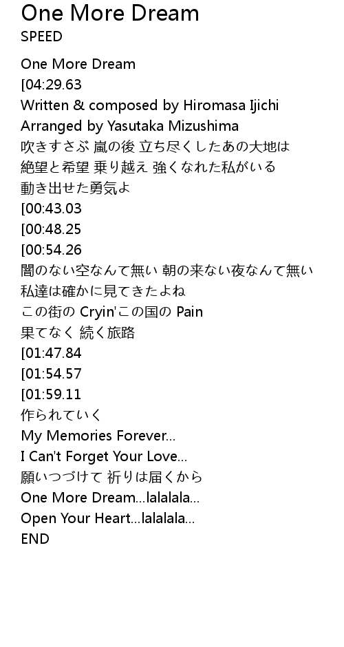| [02:49.65][00:43.03] | One More Dream rì tú qiè |
