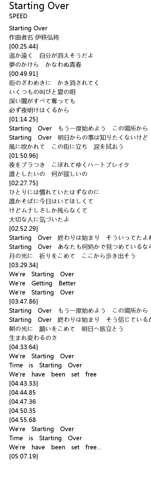 | [01:15.45] | Starting Over もう一度始めよう この場所から |