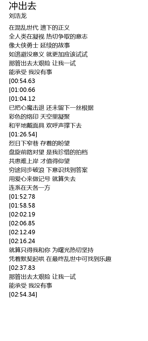 | [00:47.69] | 那管出去太艰险 让我一试 |