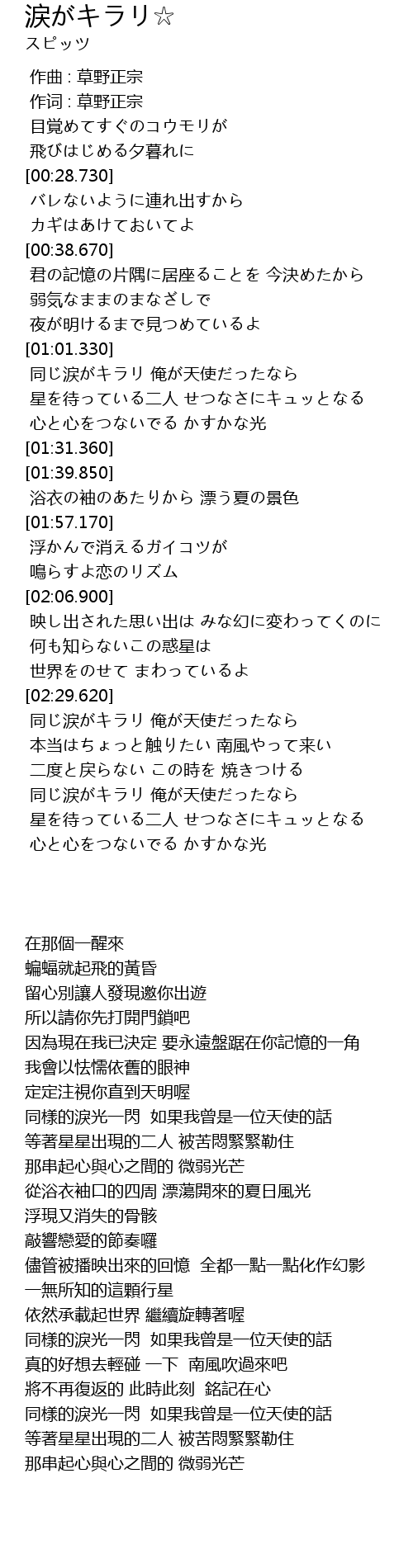 | [02:57.240] | 同じ涙がキラリ 俺が天使だったなら |
