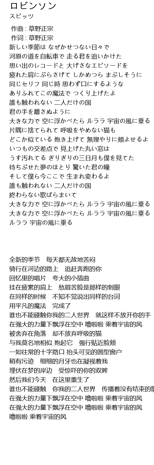 | [00:01.00] | 作词 : 草野正宗 |