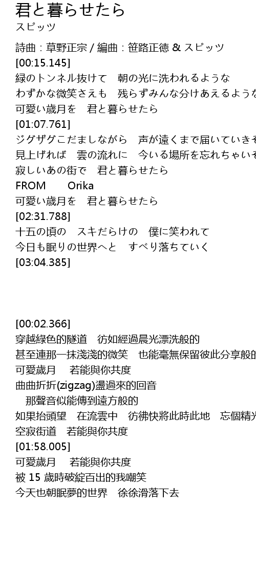 | [00:02.366] | 詩曲:草野正宗/編曲:笹路正徳 & スピッツ |