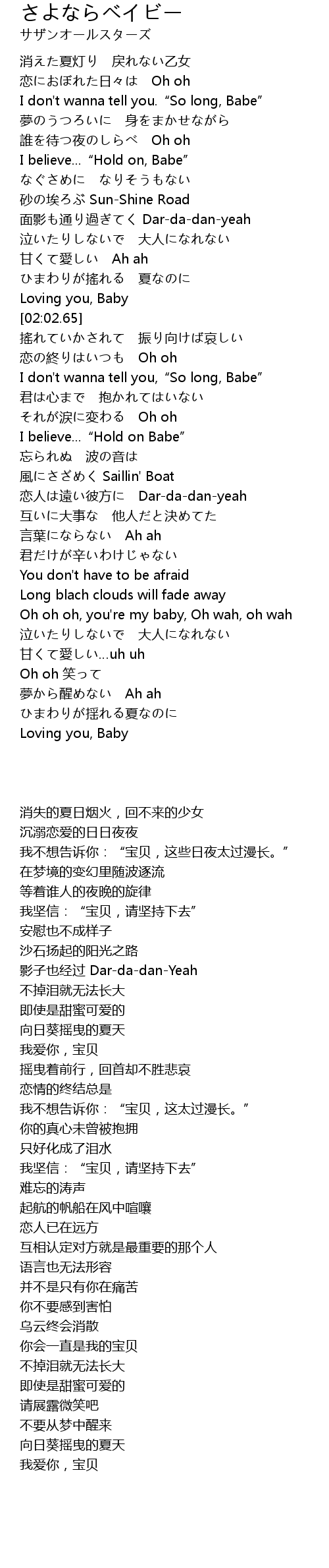 | [02:29.53] | I don't wanna tell you,“So long, Babe” |
