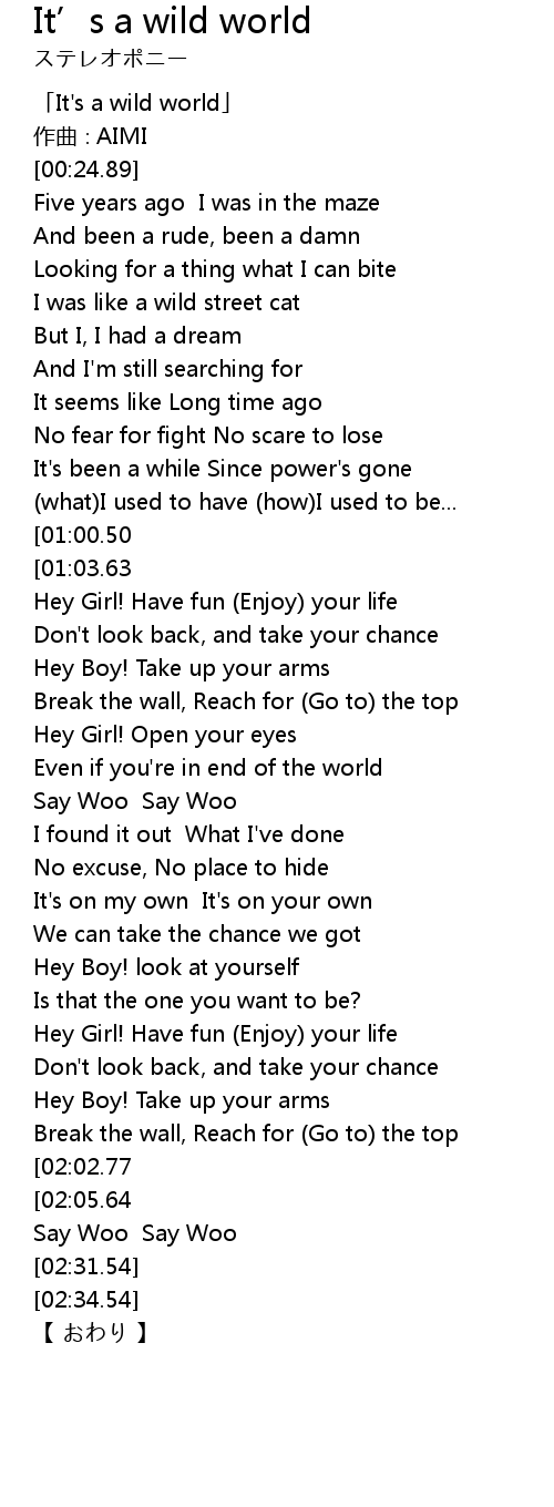 | [01:51.45] | Hey Girl! Have fun (Enjoy) your life |