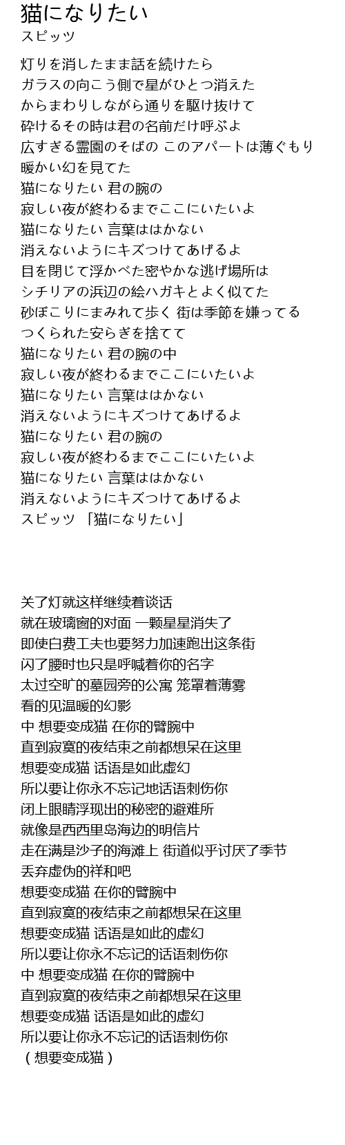 | [02:21.970] | 猫になりたい 君の腕の中 |