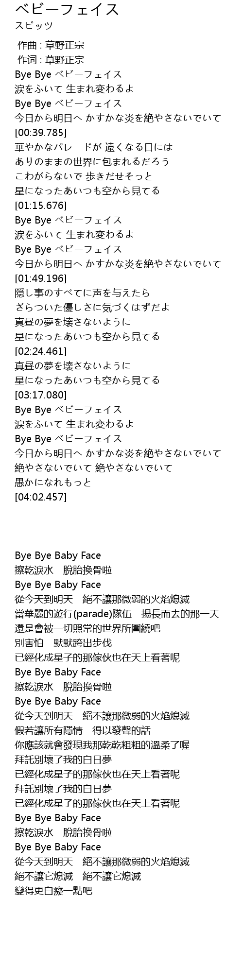 | [03:33.453] | Bye Bye ベビーフェイス |