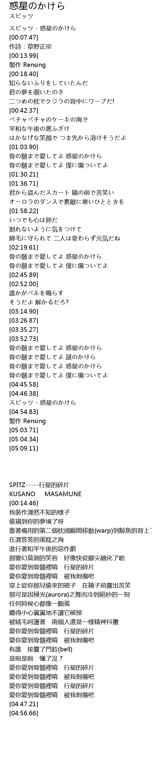| [04:47.21] | スピッツ - 惑星のかけら |