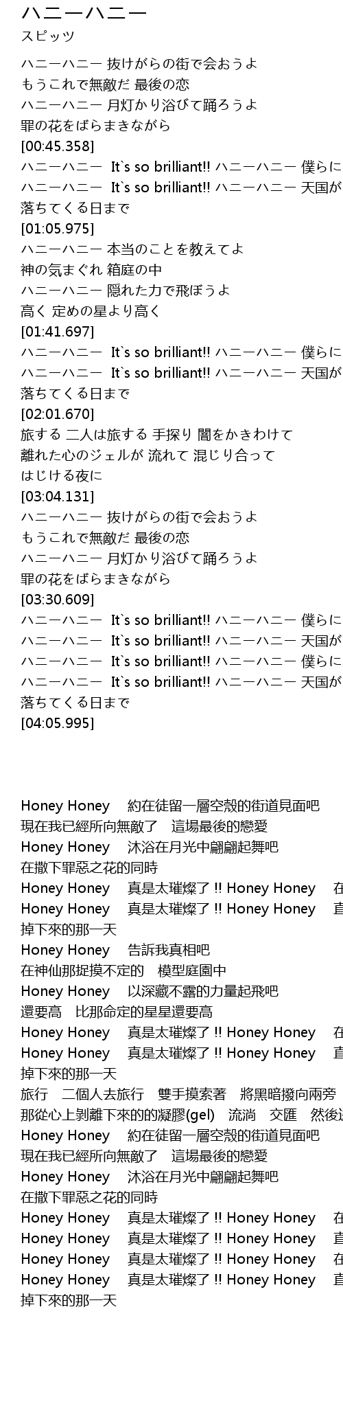 | [03:39.402] | ハニーハニー It`s so brilliant!! ハニーハニー 天国が |