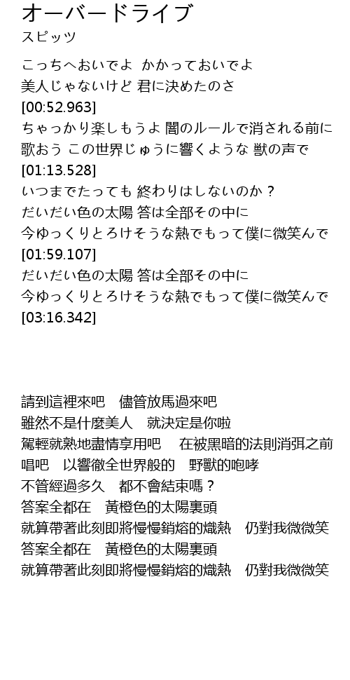 | [02:55.331] | だいだい色の太陽 答は全部その中に |