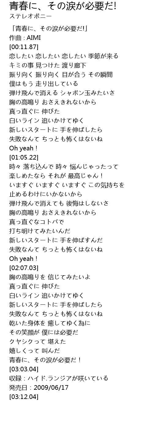 | [02:57.57] | 青春に、その涙が必要だ! |
