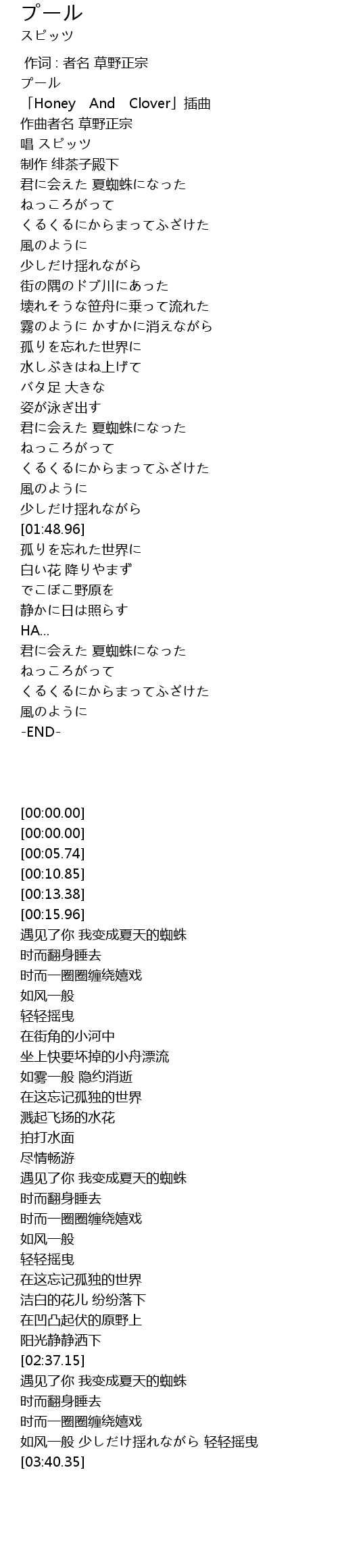 | [00:05.74] | 「Honey And Clover」插曲 |