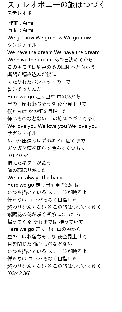 | [03:32.99] | 終わりなんてないさ この旅はつづいてゆく |