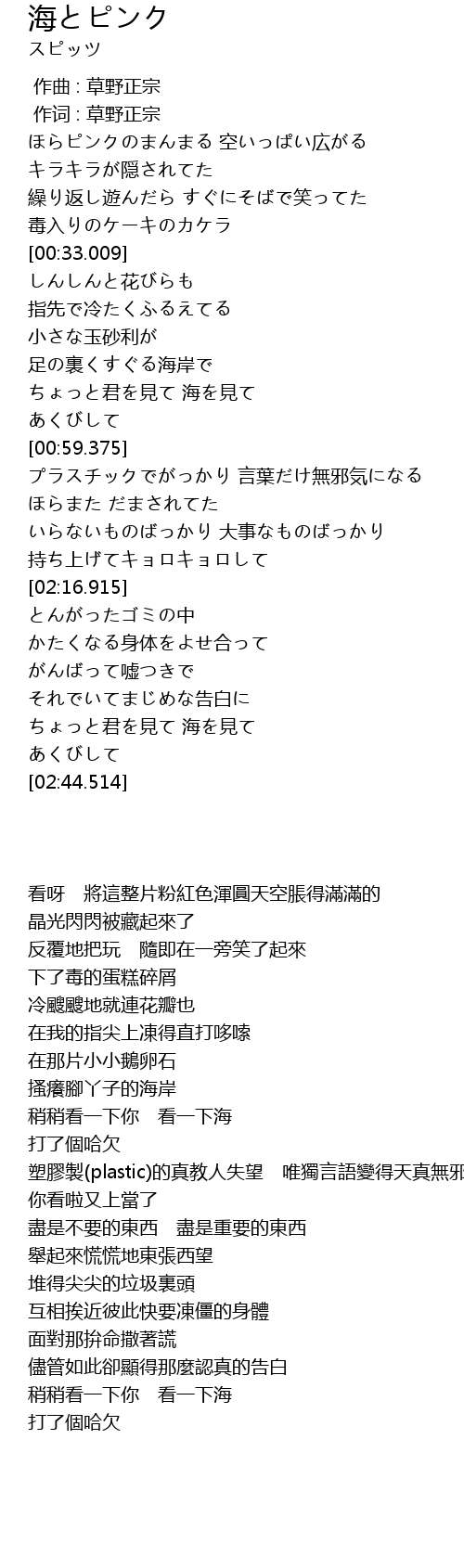 | [02:32.562] | ちょっと君を見て 海を見て |