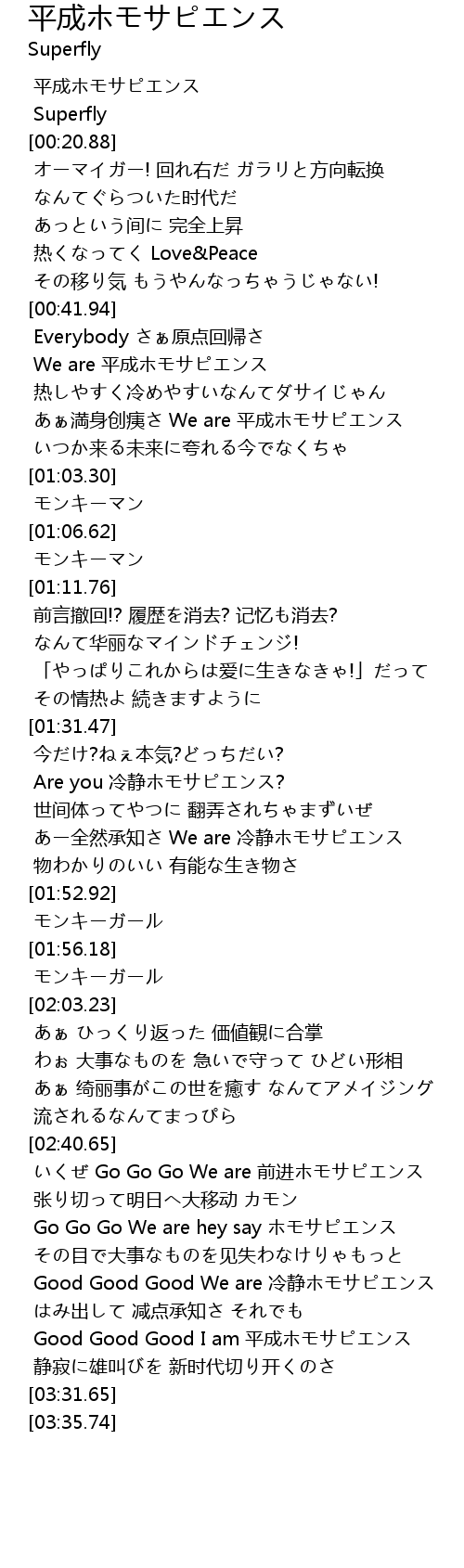| [03:20.96] | Good Good Good I am 平成ホモサピエンス |
