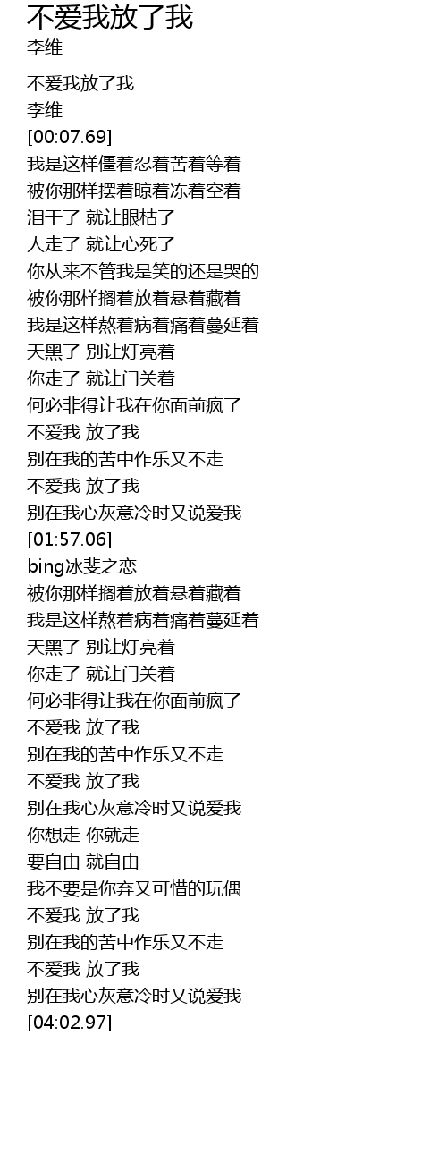 | [03:01.92] | bù ài wǒ fàng le wǒ |
