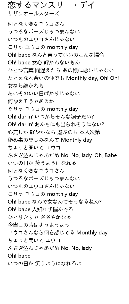 | [00:46.57] | たとえなれ合いの仲でも Monthly day, Oh! Oh! |