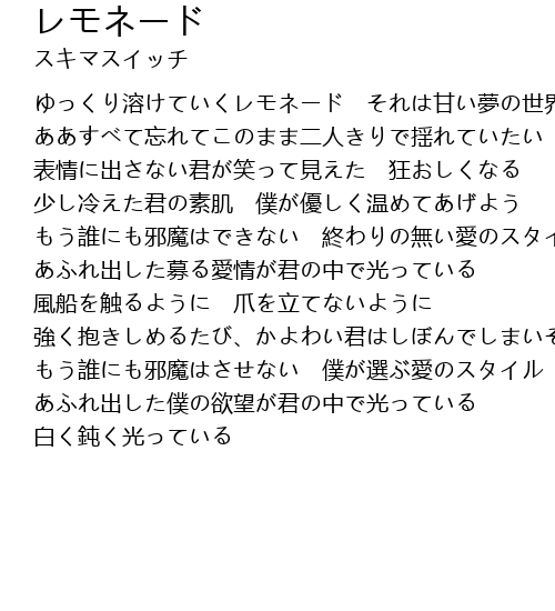 | [00:17.93] | ゆっくり溶けていくレモネード それは甘い夢の世界 |