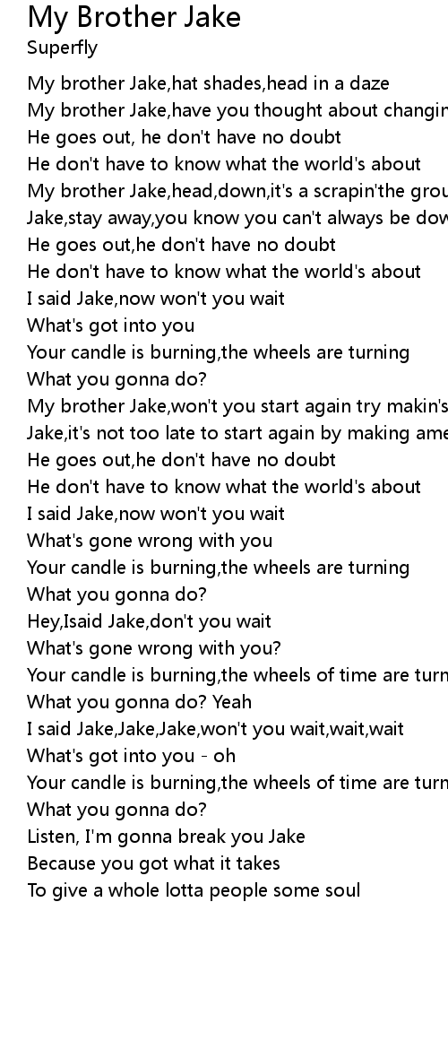 I said Jake,Jake,Jake,won't you wait,wait,wait |
