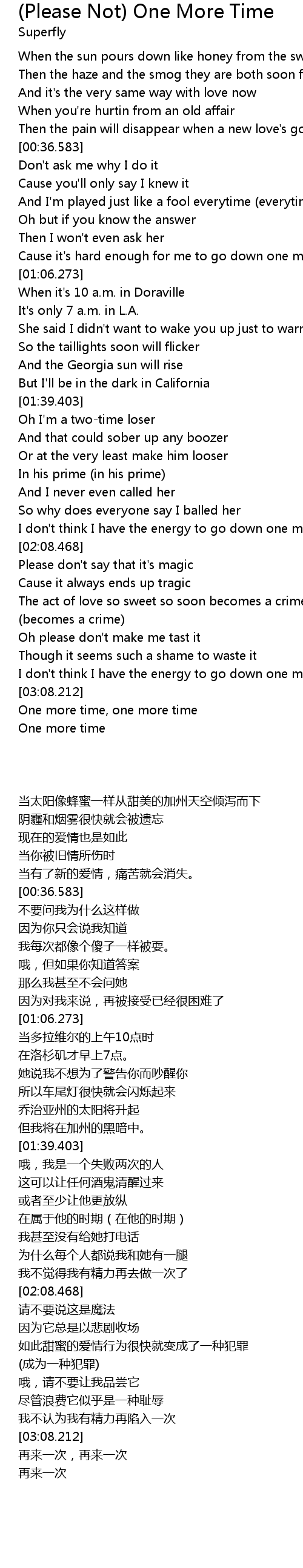 | [03:09.214] | One more time, one more time |