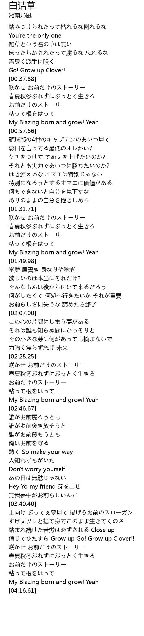 | [03:54.02] | 信じてひたすら Grow up Go! Grow up Clover!! |