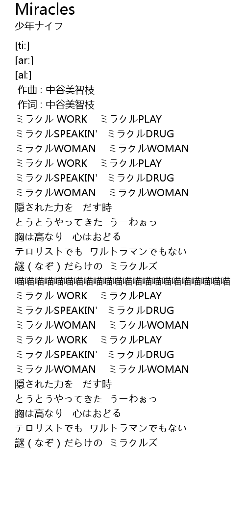 | [00:51.03] | 謎(なぞ)だらけの ミラクルズ |